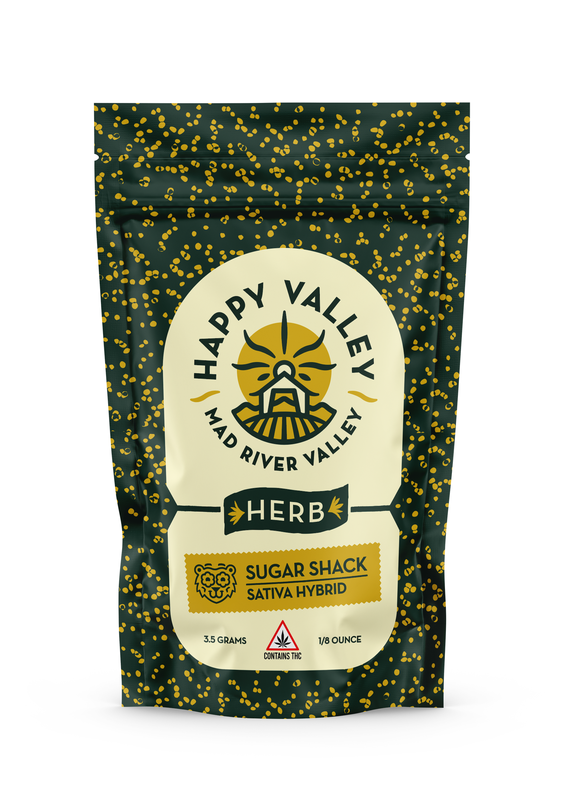 Branding system for Happy Valley (now Valley Meade) recreational cannabis dispensary in Waitsfield, Vermont.
